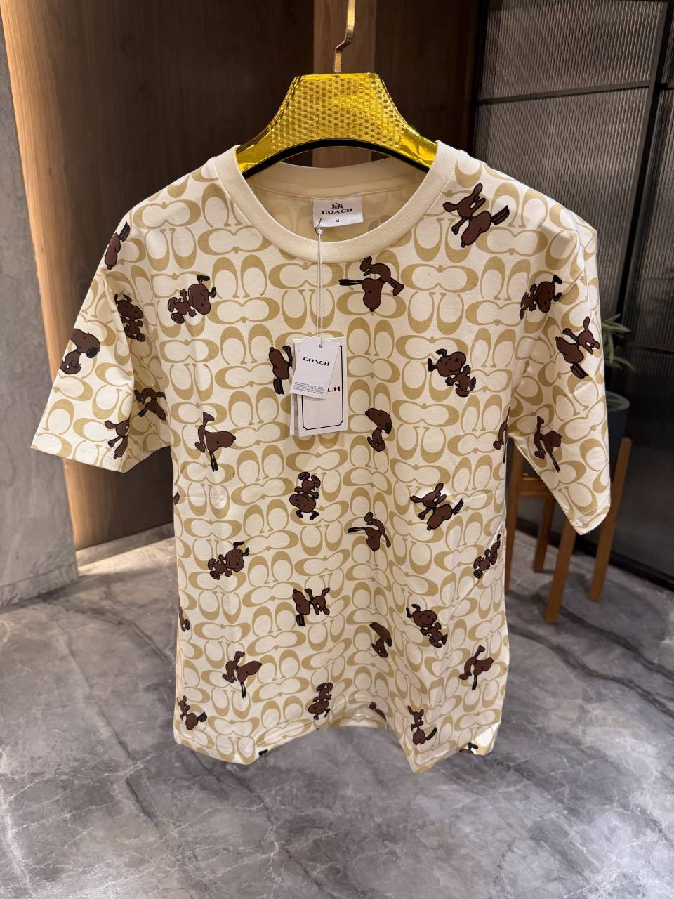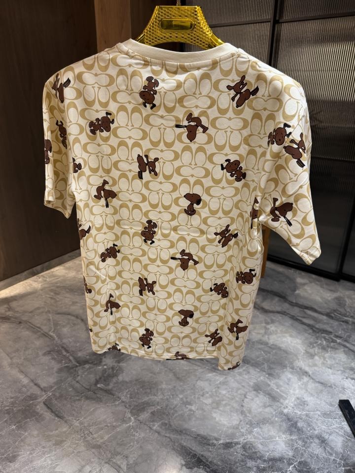 Coac h Beige All over Printed Round Neck Imported Tshirt