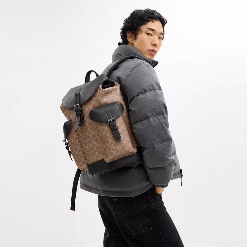 • _Coach_warner_leather_backpack_with_dust_bag_&_carry_bag_(909-apricot-black)