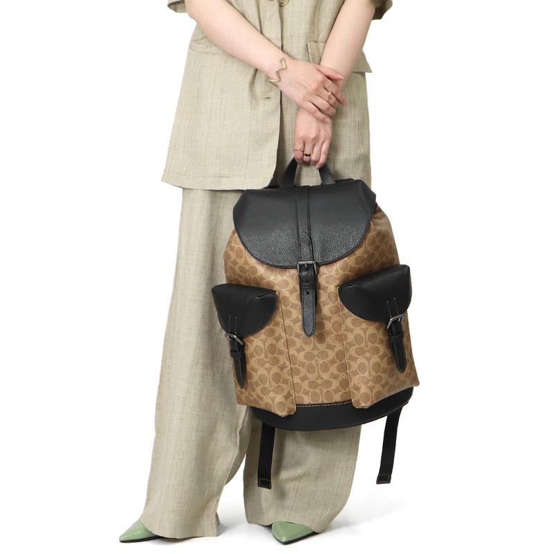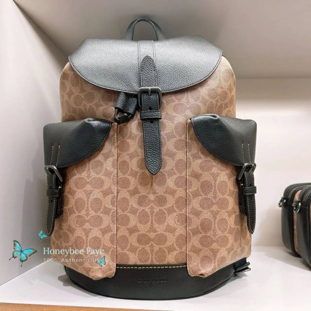 _Coach_warner_leather_backpack_with_dust_bag_&_carry_bag_(909-apricot-black)