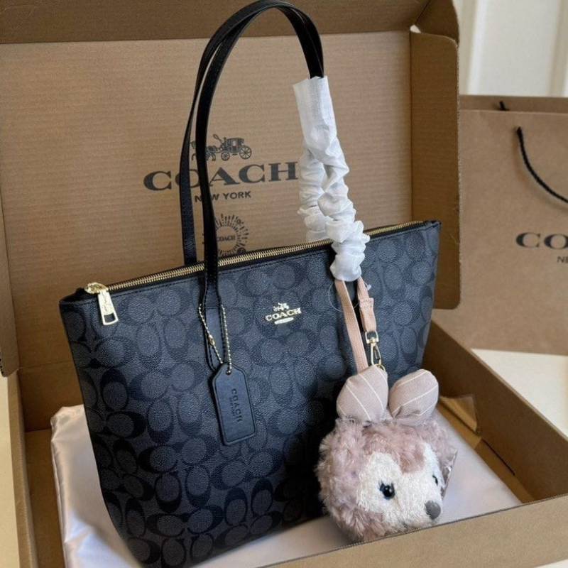 • Coach_zip_top_totebag_33_in_with_bear_charm_&_ogbox_etc_385