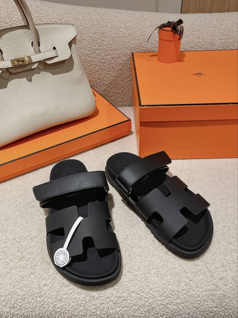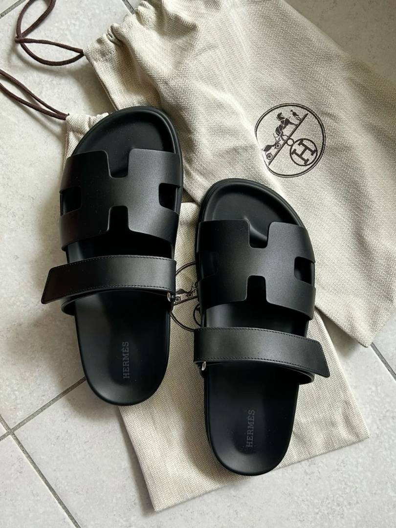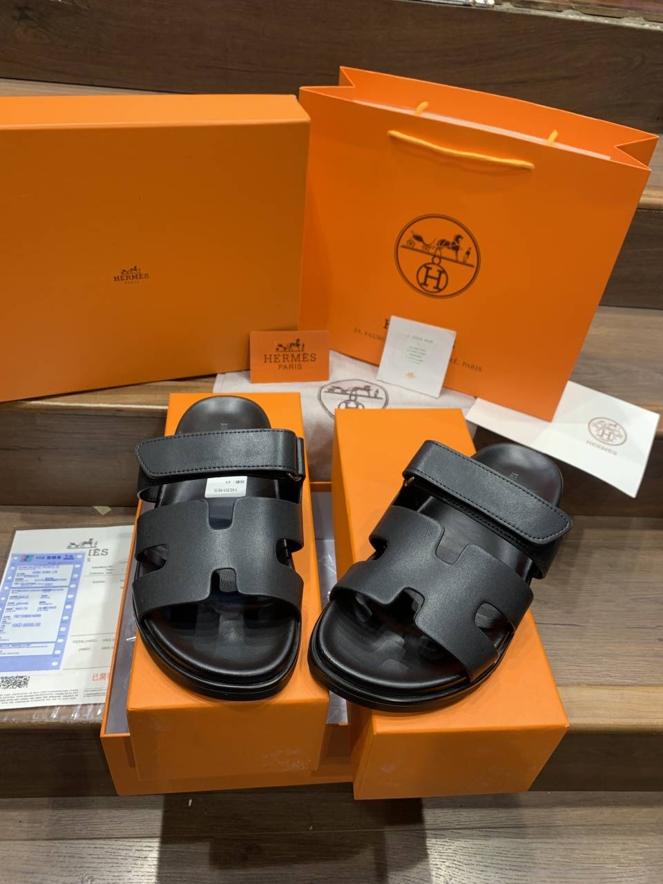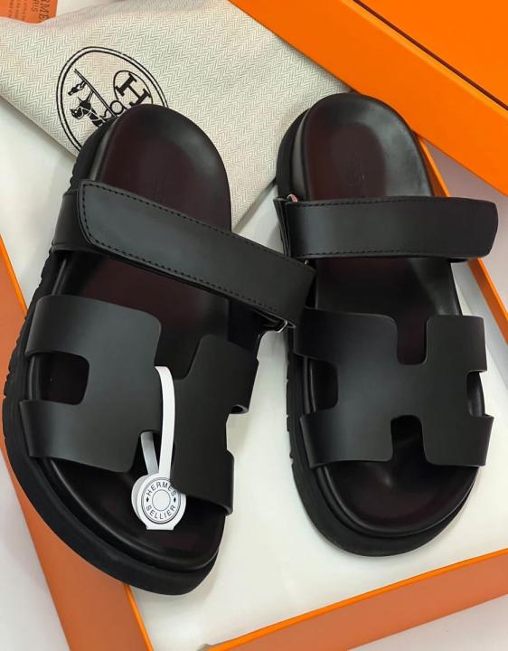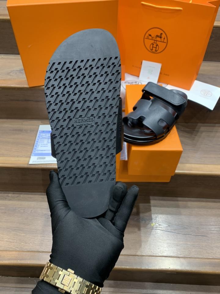 HERMES CHYPRE BLACK LEATHER PREMIUM SLIDE