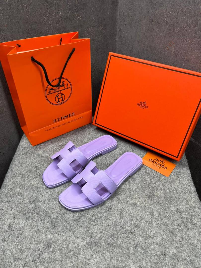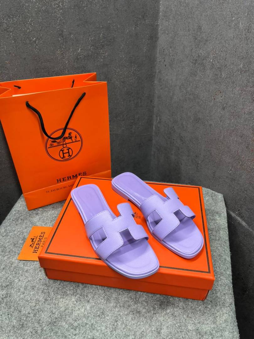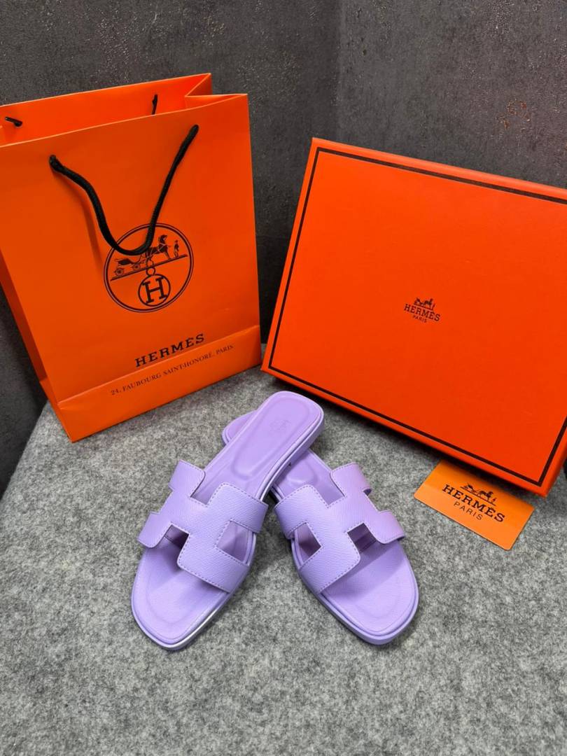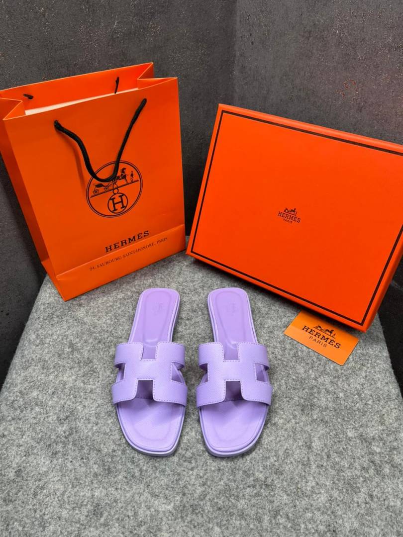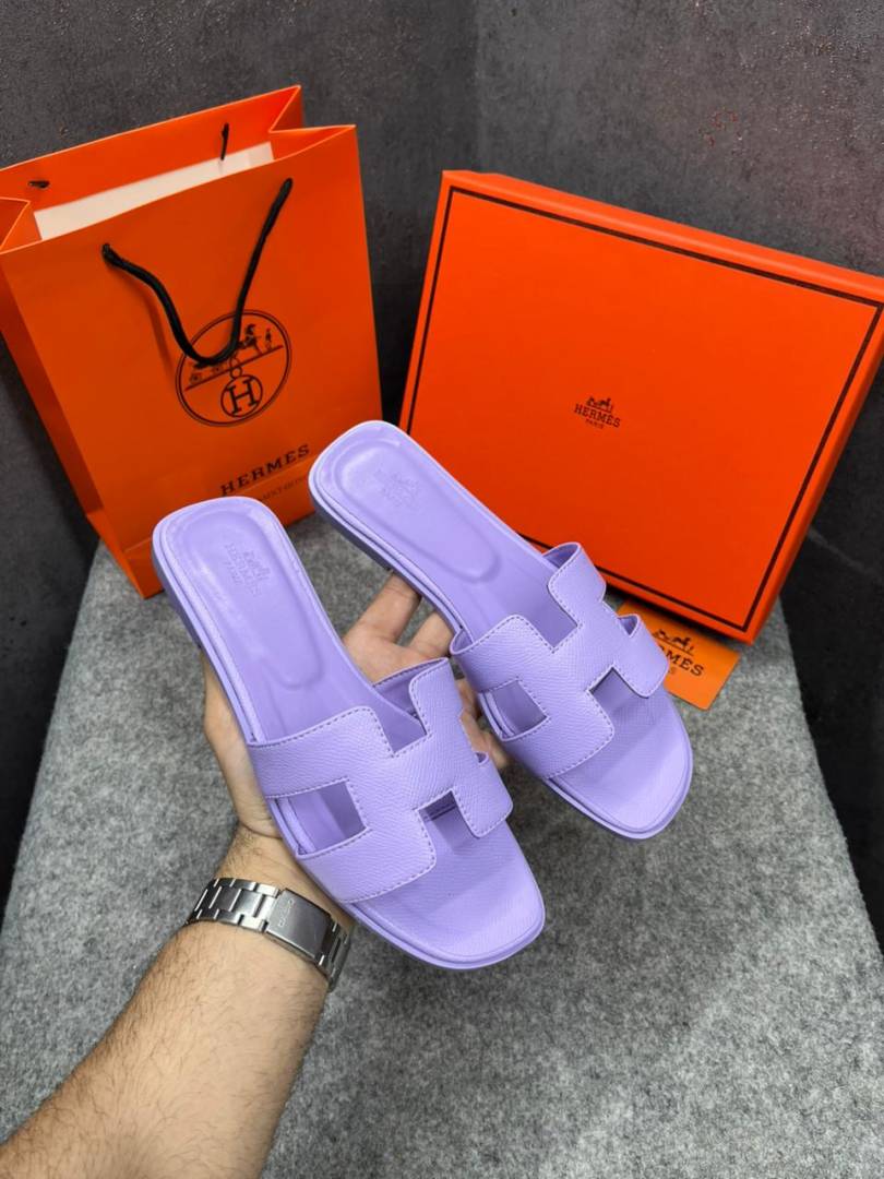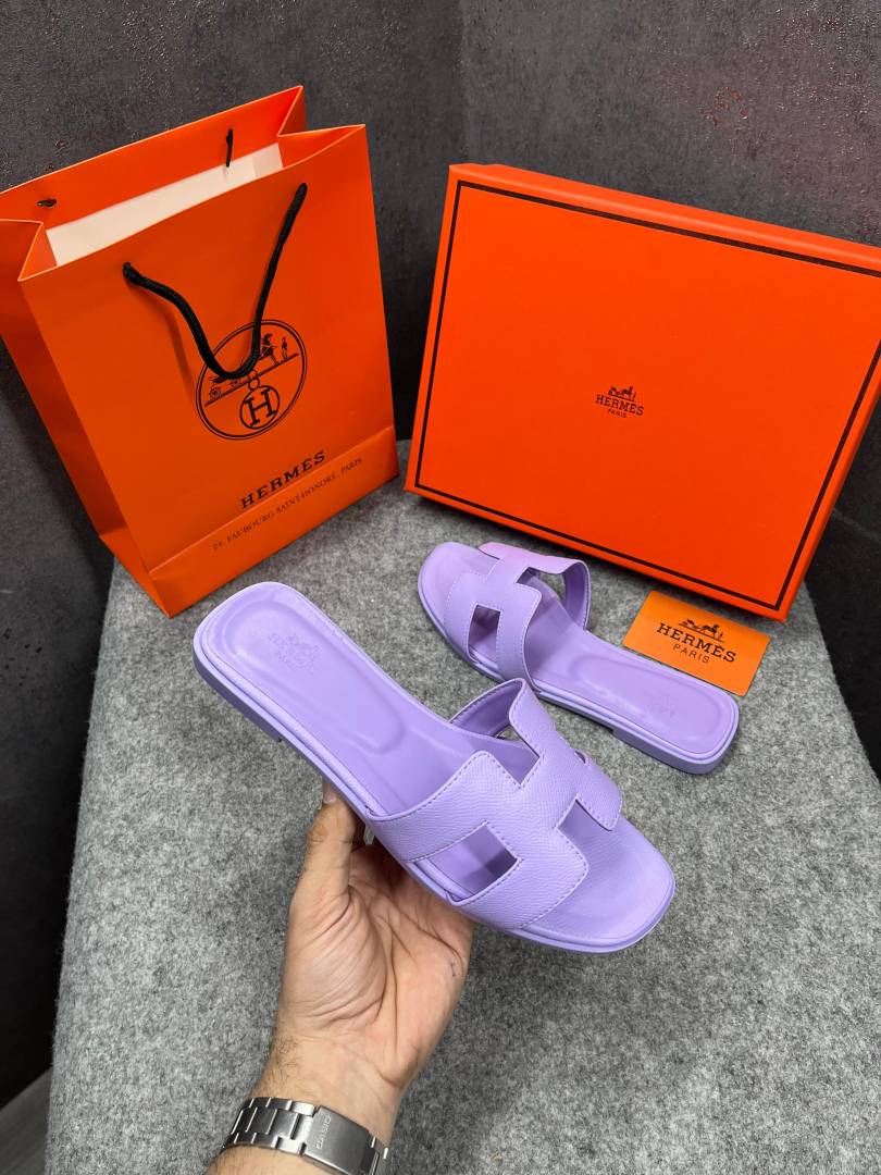 Hermes Paris Oran Flats For Her With OG Box & Carry Bag Light Purple Slide H38 Light Purple