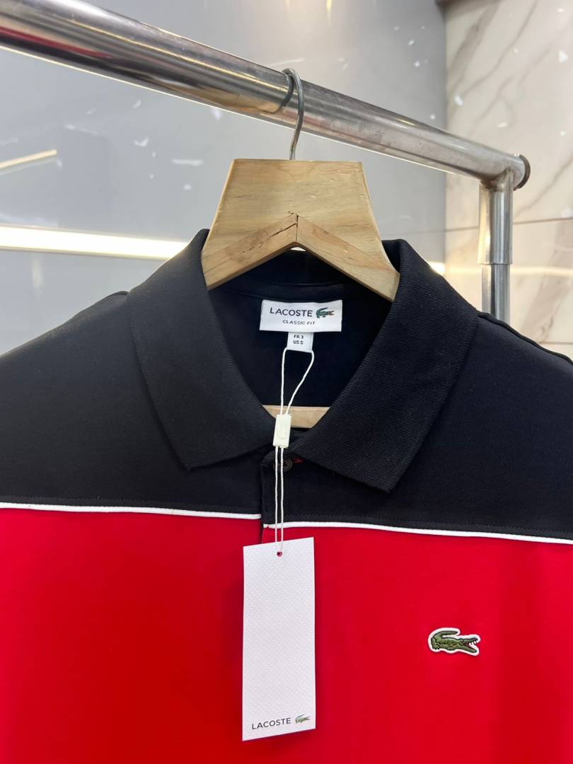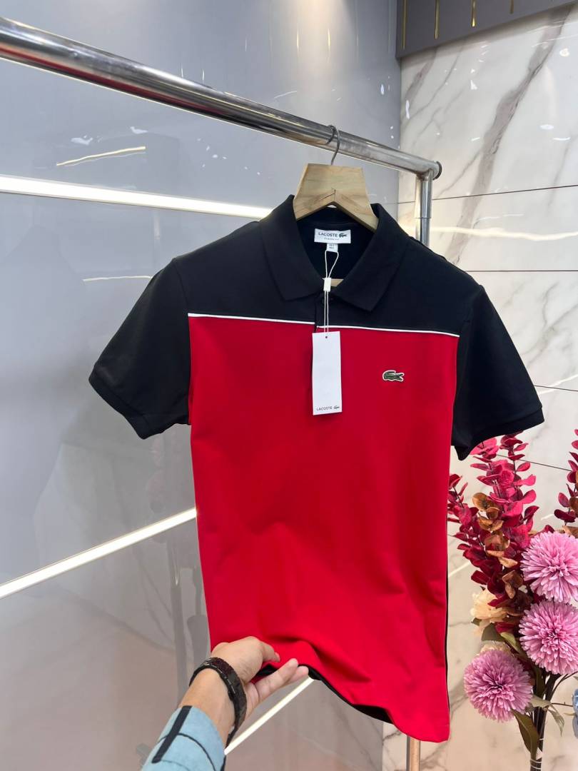 Lacost e Black Premium Cotton Pique fabric Polo Tshirt with Front Design and Embroidered Logo 3653