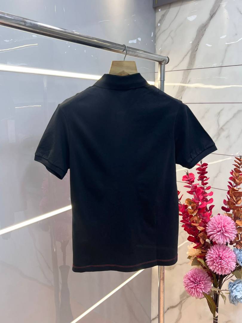 Lacost e Black Premium Cotton Pique fabric Polo Tshirt with Front Design and Embroidered Logo 3655