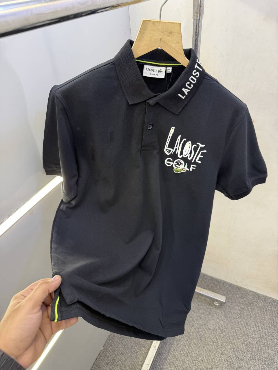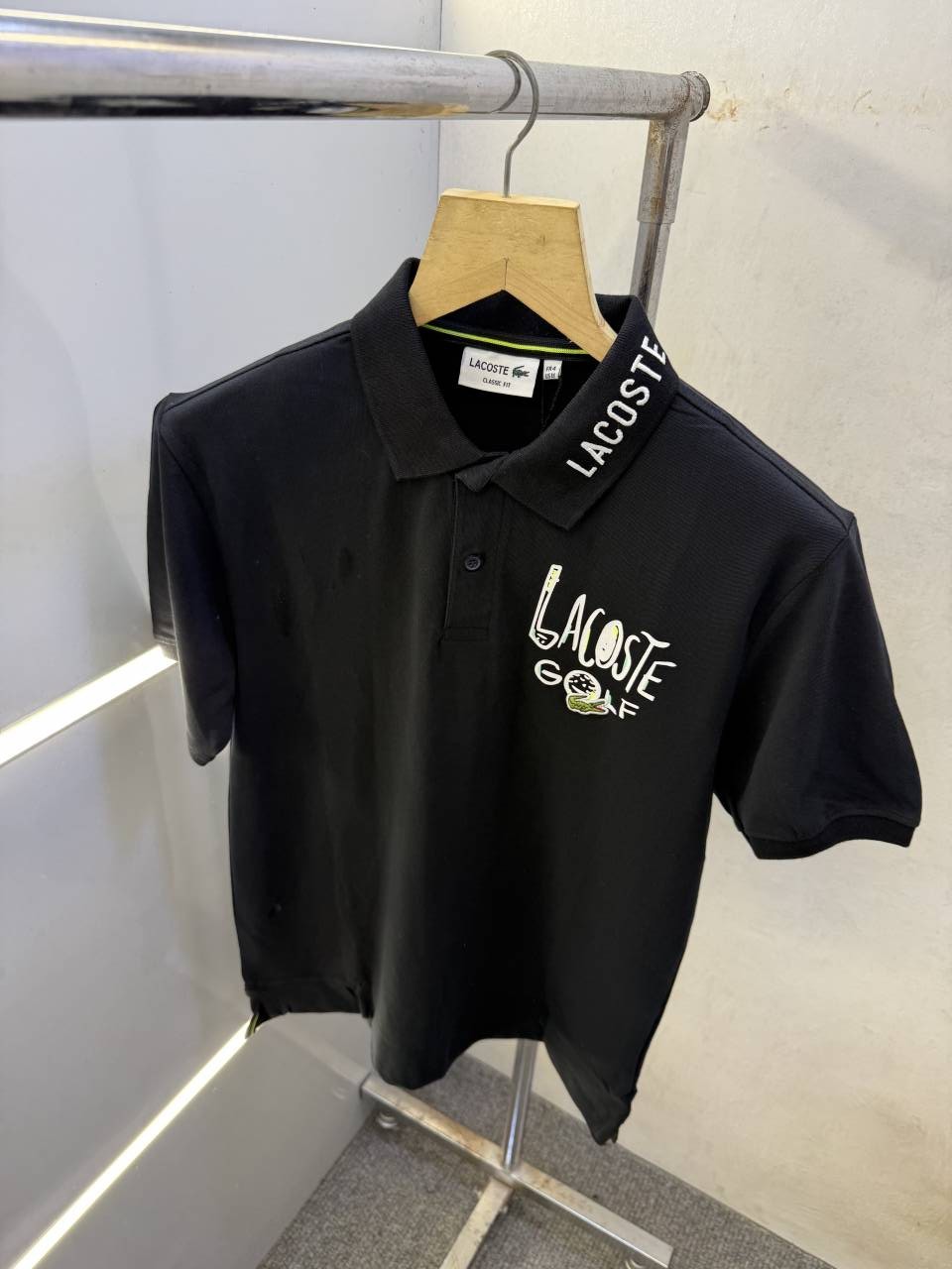 • LACOST-E PREMIUM BLACK POLO TSHIRT