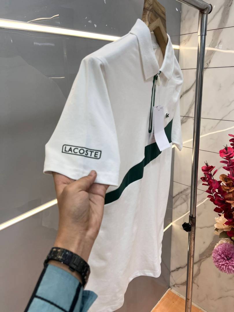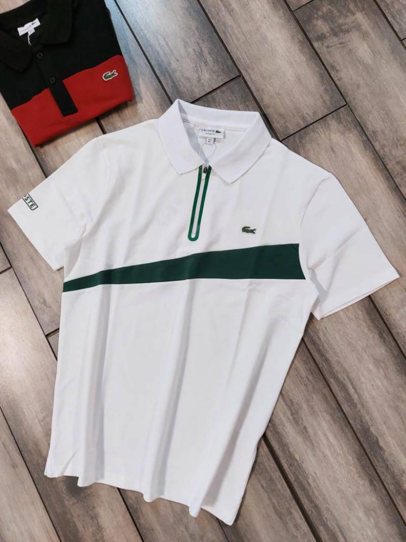 Lacost e White Premium Cotton Pique fabric Polo Tshirt with Front Design and Embroidered Logo Zip Style 3649