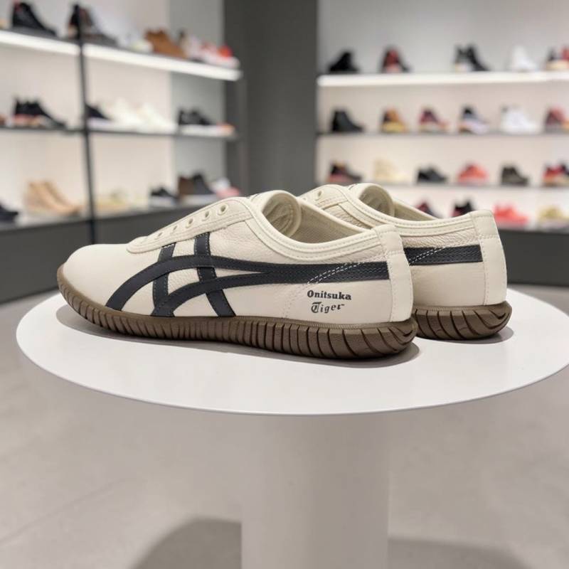 • Onitsuk_a Tiger Tsunahiki Slip-On White Black Mens 7A Premium (D-2064)