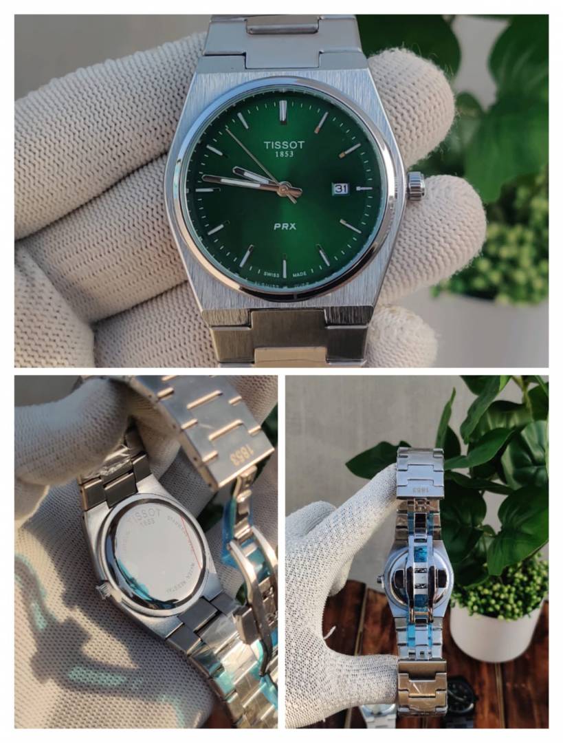 TISSOT PRX QUARTZ SILVER GREEN PLANE DIAL