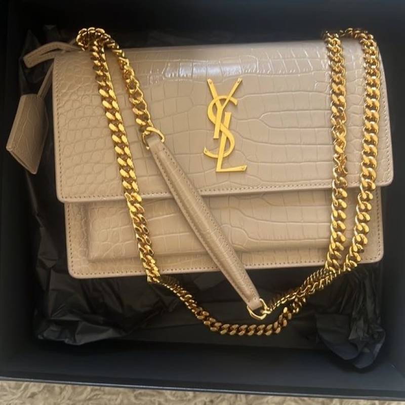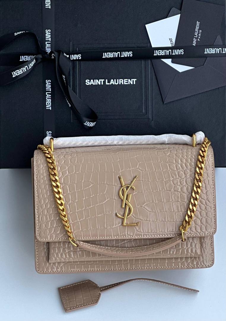 Ysl Sunset Croc Skin Shoulder Sling Bag With Original Box & Dust Cover Packaging